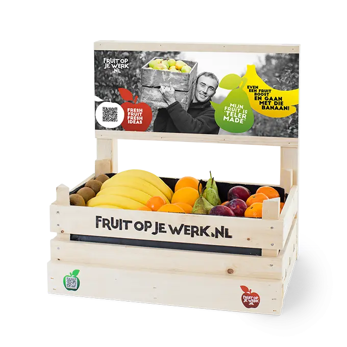 Bij FRUIT OP JE WERK geloven we in kwaliteit, variëteit én versheid. Zo werken we zoveel als mogelijk met lokale telers uit de directe omgeving van Tilburg. We stellen hoge eisen aan de leveranciers van onze fruitsoorten: zo zorgen we ervoor dat al onze producten kwalitatief goed zijn. We leveren de bekende en populaire fruitsoorten, maar ook tropische varianten en de zogenaamde ‘vergeten’ fruitsoorten. Variëteit draagt er namelijk aan bij dat werknemers zo lang mogelijk fruit blijven eten en gezonde keuzes blijven maken. De inhoud van de fruitbox varieert van week tot week. Bekijk op onze website meer informatie over de inhoud van de box. Het fruit wordt klaar voor gebruik afgeleverd en gepresenteerd op de werkplek, waardoor jij er geen omkijken naar hebt.