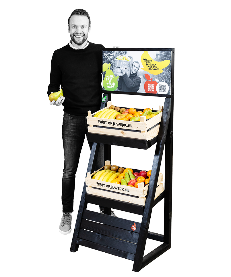 Het aanbieden van vers fruit is niet altijd genoeg om het gedrag van mensen structureel te veranderen. Daarom is ons concept vollediger en gericht op beleving en het stimuleren van een gezond eetpatroon. Door onze kaarten en displays trekt het fruit extra aandacht. Op een luchtige en laagdrempelige manier delen we informatie over de eigenschappen en voordelen van fruit. Soms met een knipoog, maar altijd met de gedachte dat kennis de sleutel tot verandering is.